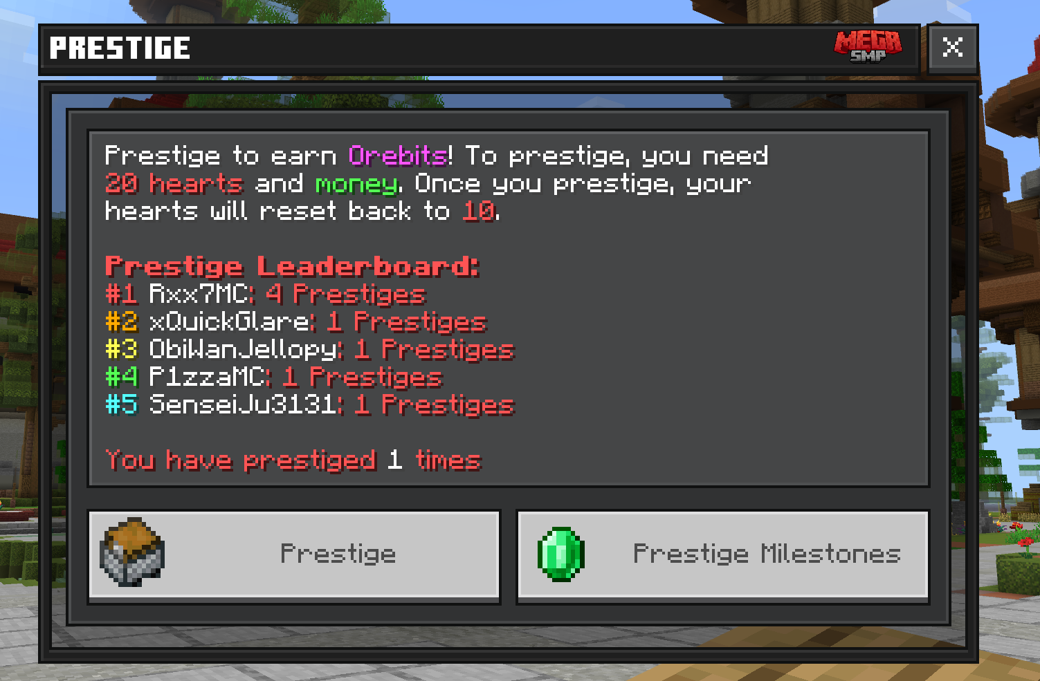 MegaSMP PrestigePrestige and reach various milestones to earn Orebits!