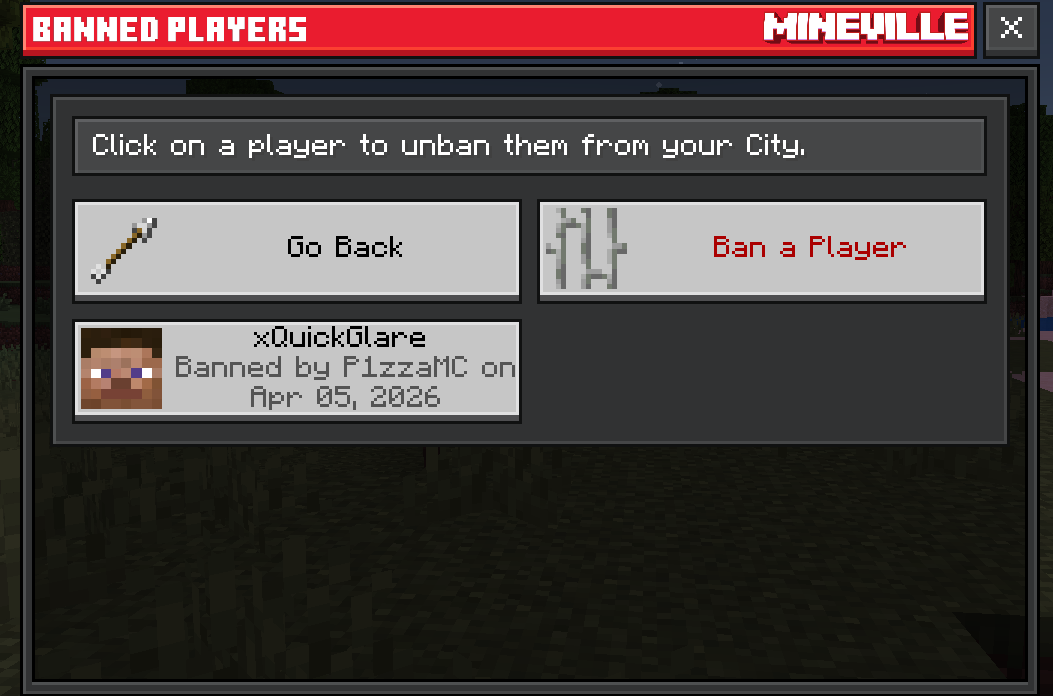 - Added /city ban <username>